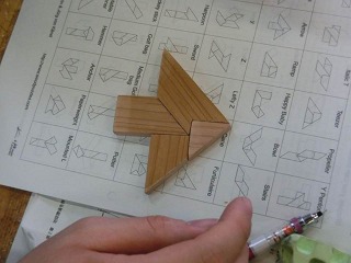 自分の卒業した大学で冬期講座で材料加工の講師として呼んでいただいた。時間も3時間ほどだったので「T−パズル」を作ってもらうことにした。