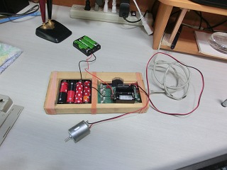 単5電池は古いものだったので,もう使えなかったため,ニッケル水素3本で3.6Vの電池ボックスを別につないで使った。