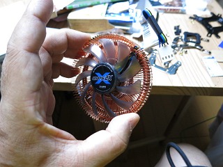 これが,新しいクーラー,ヒートパイプと銅製のフィンが輝いている。