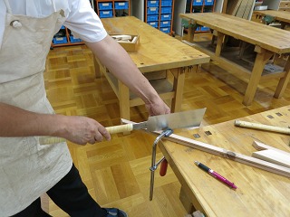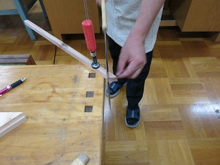 自分では,両刃のこぎりを使って切断してみたが,時間がかかるのと小学生では難しいのとで切断した材料を用意することにした。