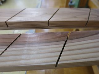 底辺部分も溝を入れて差し込むと,紙を入れ込むのが大変なので同じ高さで切り取った後にばらばらにした。