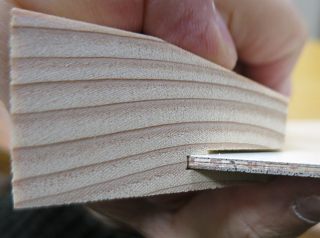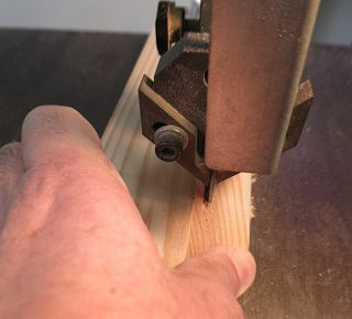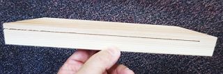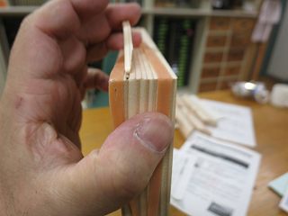 短い辺にベルトソーで切り込みを入れて,紙が入る口にした。片側は切り抜けてしまうがまあ簡単にできるように。