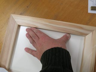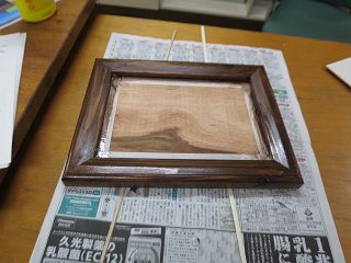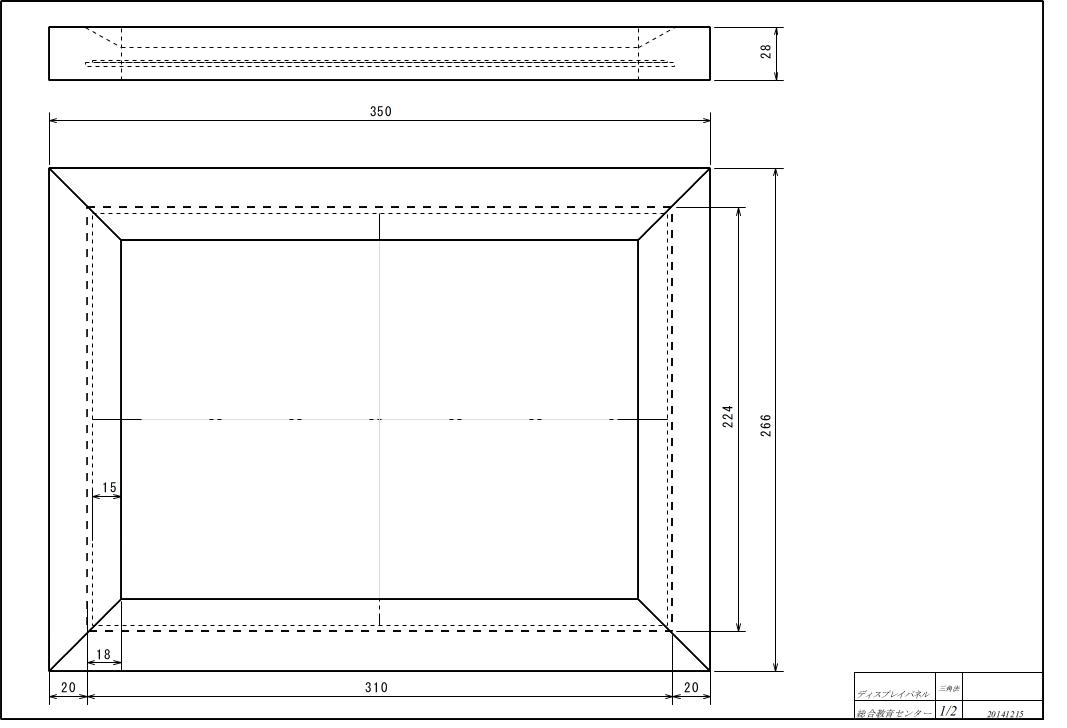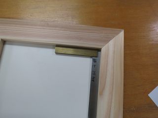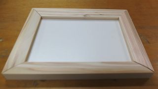 つくったのはこんな形の額縁。横にスリットが入っていて,A4の紙がちょうど入って収まる。