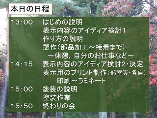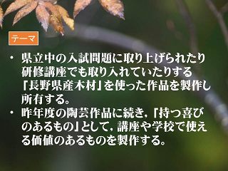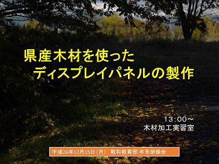 自分の所属する教科教育部では,毎年年末に研修会を行っている。昨年度は陶芸だったが,今年は自分が企画する番になったので,「県産木材ディスプレイパネルの製作」と題して行った。