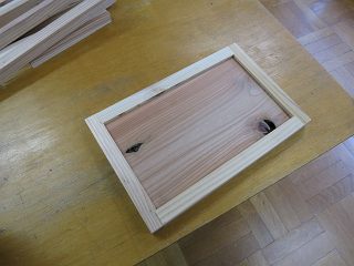 まずは印鑑の箱。今まではお菓子の箱に入れてあったので,スギ材で製作。