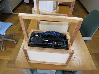 プロジェクターの箱。研修室に持って行って使うのだけれど,今までは購入時の段ボールに入っていた。