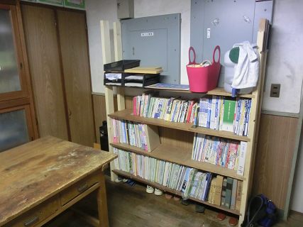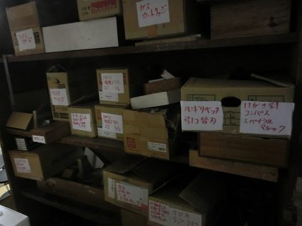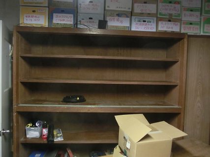 とりあえず戸棚に入っていた部品や工具類を箱に一時保管して奥の倉庫に入れる。(戸棚には普段使うものを入れることにした)