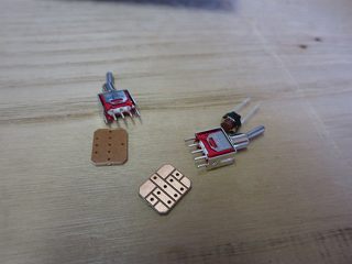 切り替えスイッチはブレッドボードに刺さらないので,ピンヘッダと専用基板で提供することにする。
