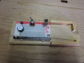 前回からの大きな変更は,電源(電池ボックス)からの供給を直接ではなく,豆電球を直列につないで見たこと。