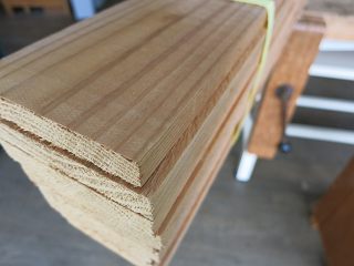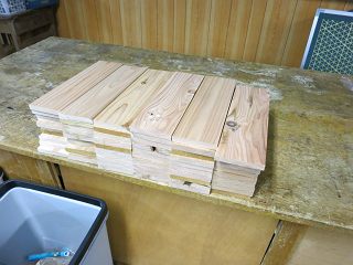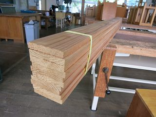 教材カタログでも取り扱っているのは基本的に4面プレーナがけの材料なので,ホームセンターで買ってきたスギの荒材を使う(1820×90×13で1枚200円弱)