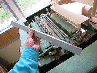 交換用のジグと説明書は自動鉋盤のサイドカバーにきちんと保管されていた。交換刃は技術室の引き出しをあさっていて見つけた。
