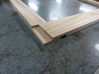 節が多いけれどとってあった薄いスギ板を縦引きして縁にする。