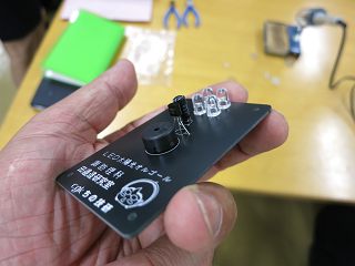 最初は電波の可視化実験装置。といっても、LEDにダイオードをはんだづけするだけ。