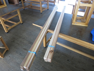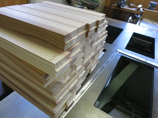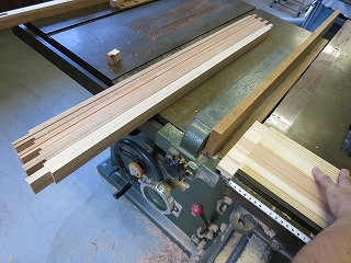 スギの角材を買ってきて材料にする。35×25の太さで長さ1800mmが6本で1100円程度。