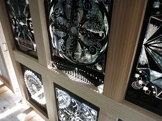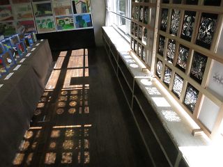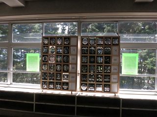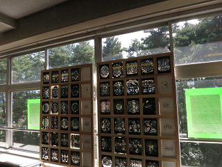 学級毎に一つの枠に入れて,展示したところ。透けた先に森が見えるようにしたいというのが美術の先生の願い。