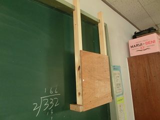 どこに設置しようかと悩んだが、あまり中心からずれると使いにくい。黒板用の蛍光灯の前に置くことも考えたが、教室の蛍光灯が邪魔で見にくい。