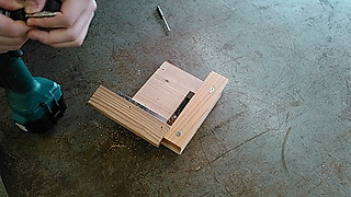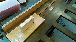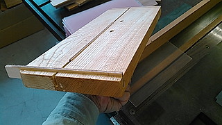これが今回作った治具縦びき用のガイドに押しつけることができるよう縦横に板を入れて引っかけるようにしました。