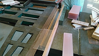 切断後は折り曲げ用の治具をつくって、コの字に曲げます。(本当は生徒にさせるつもりだった作業)