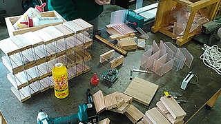 前回の更新通りケガをしたわけですが、授業で使うので作業を続行しなければならず2週間ほどしてから休みの日に高校生の息子に手伝ってもらってケースを作りました。