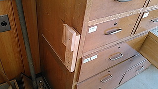 横切り盤のテーブルが動かないように、このようなストッパーをつけました。(今まではひもで止めていた)