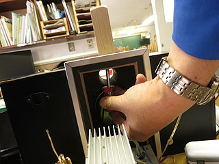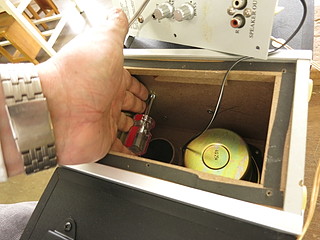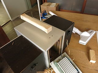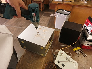 筐体は木質材料にアルミをかぶせてあるので、下穴を開けてコーススレッドで留めることにした。