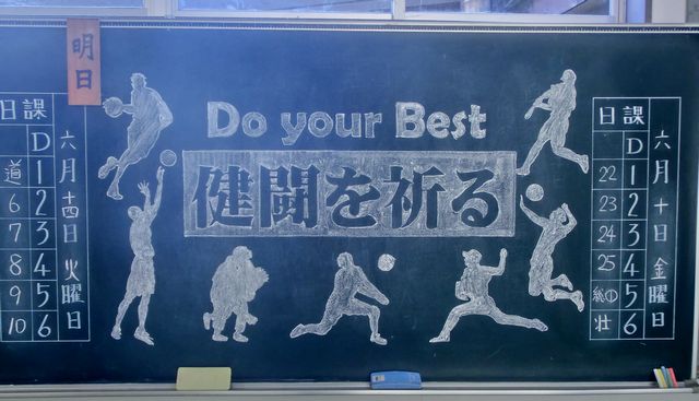 それでも、ここぞと言うときはいつも以上に力を入れてみようと考えて、中体連大会の前日は黒板アートのようにやってみようかと考えた。