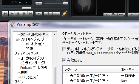 と言うのも、自分が使っているPC用の音楽プレーヤーはwinampなのだけれど、これにはホットキーの機能があって