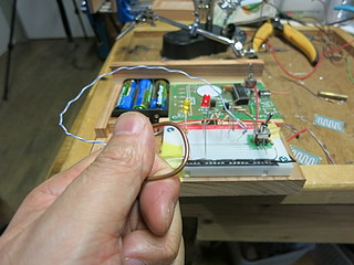 タッチセンサースイッチ、2.2MΩをつかったが、こちらはしきい値がなかなか微妙なのでプログラムを差し替える必要があった。