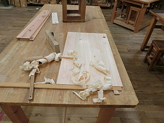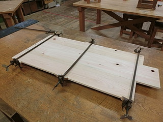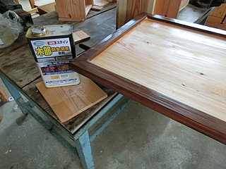 ヒノキ板を接合して後の板にする。