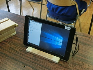 タブレットとヘッドセットを使って行うのだけれど、タブレットのインカメラと画面の位置が大切になってくるので、スタンドを作った。