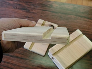 スギの板を同じ大きさに切って、溝を入れただけの簡単なもの。