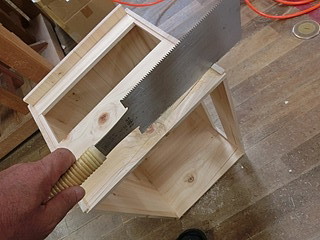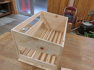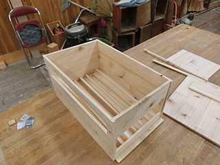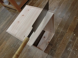 屋根を片側に勾配をつけるために、箱にしてから切り落とした。