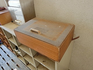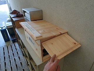 今まで使っていたのは、上にふたが開くタイプ(数学の立体模型が入っていた箱)だったので、確かに大雨の時は入れるだけで濡れてしまう。