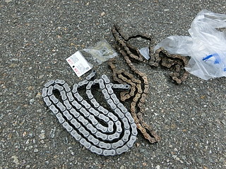 これはいつ切れても仕方が無いねと言うことで、新しいチェーンをあつらえてもらう;。