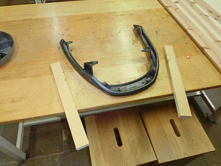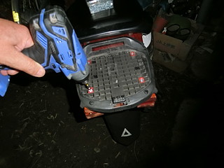 鉄製のアングルを使って溶接して作ることも考えたが、とりあえず木材で様子を見て見るべくキャリア用のフレームを外す。