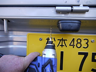こちらはリアカメラの設置が必須なので、ナンバープレート上に穴を開けて取り付ける。