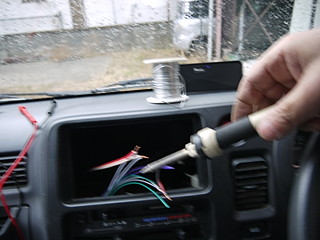 購入した軽トラにカーステレオなどの装備を設置した。軽トラとはいえ機器は充実させたいので手をかけた。