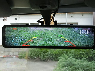 今時の車にのように、ギアをリバースに入れると、ガイドラインが表示される。