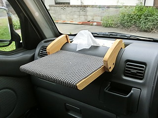 その他、電源関係も増設してACインバーターやETC用に利用したり、オプションの助手席エアバックがない空間にティッシュボックスとテーブルを設置した。