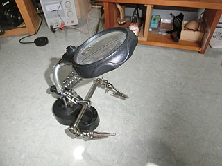 これは自分が家で使っている作業スタンド。普段は板の上で作業しているが、細かい作業時にはルーペとライトがついたこのスタンドを使っている。(この頃は、ルーペ自体はヘッドルーペを使っているが)