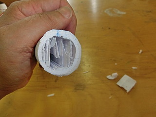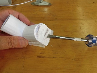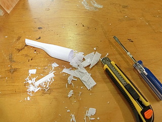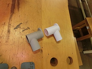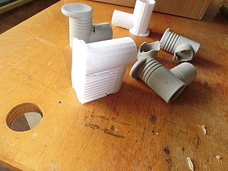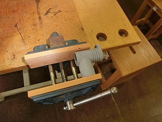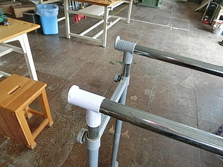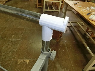 そして、材料置き台のパイプジョイント部。根元が折れてしまったけれど、ポリプロピレンなので接着剤ではつかなかったので作ってみた。