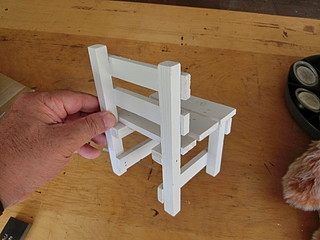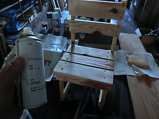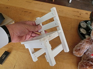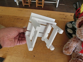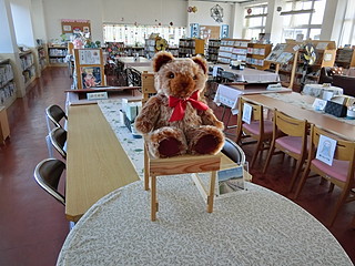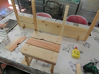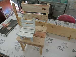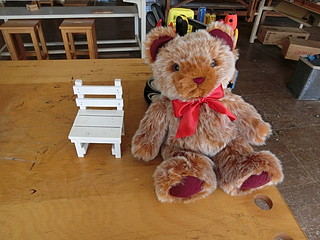 図書館の司書さんより、保護者が寄付してくれたくまを座らせておく椅子を作るよう依頼された。