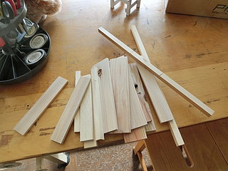 それでも多少の材料は使うけれど,ストックの木材を削ったり分割したりして細く薄く材料を加工する。