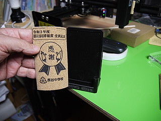 今年度、自分の中学校が博報賞を受賞して、副賞としてお金も頂いたので記念品を製作して配付することにした。