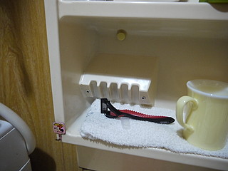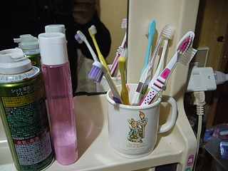 前カバーがなくなっているが、そもそも今時の歯ブラシはこの幅に入らない物が多くて直していなかった。コップに差して使っていた。