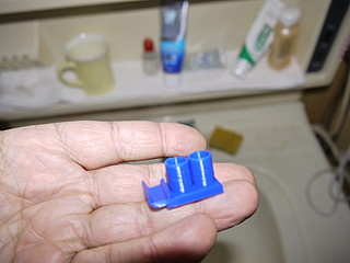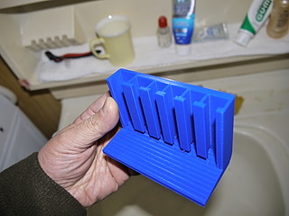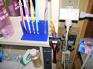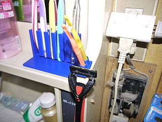 また、自分専用だけれど歯間ブラシとひげそりのスタンドも作ってみた。こちらは1時間少しでプリント出来た。