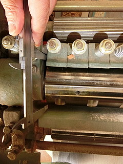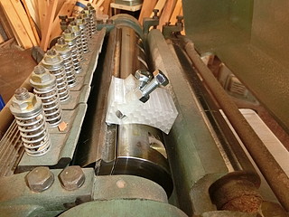 取り付けたところ。ストッパー用のボルトは内部と上部に2つのナットがあるため一度位置決めすると動かない。現在の刃の位置で固定する。