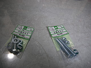この位置で固定用ボルトを締め付けて固定、さらに治具を外して一番外の固定用ボルトを固定する。