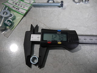 M8のネジ山を作るのは難しいのと、遊びやガタが出ても困るので、中にナットを仕組むよう大きさを測る。