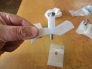 それで、左側のタイプを作った。1つのデザインで左右に使えるようにするつもりだったが、固定用のボルトの軸が鉋胴の中心にむいていなくて取り付けられなかった。